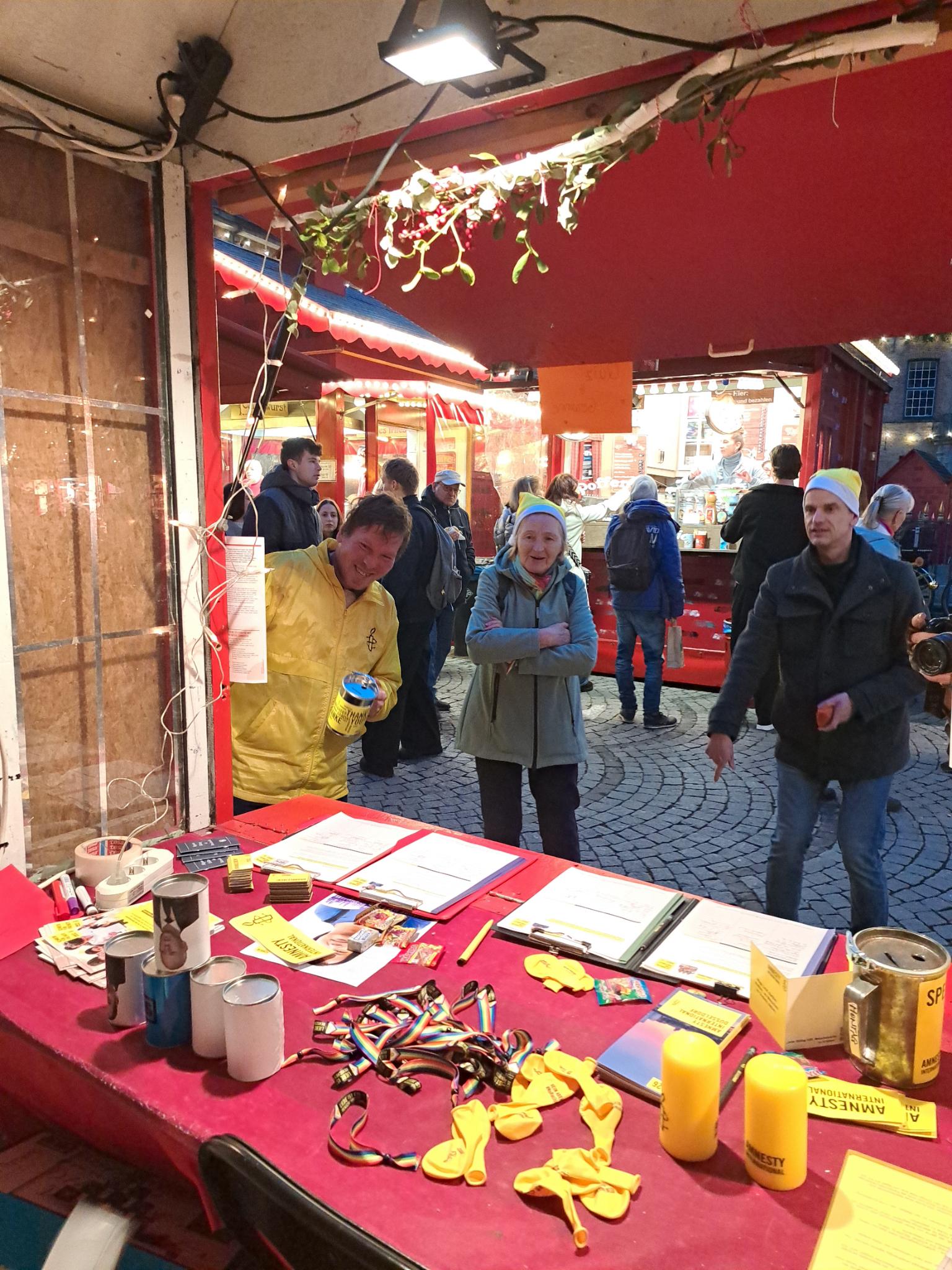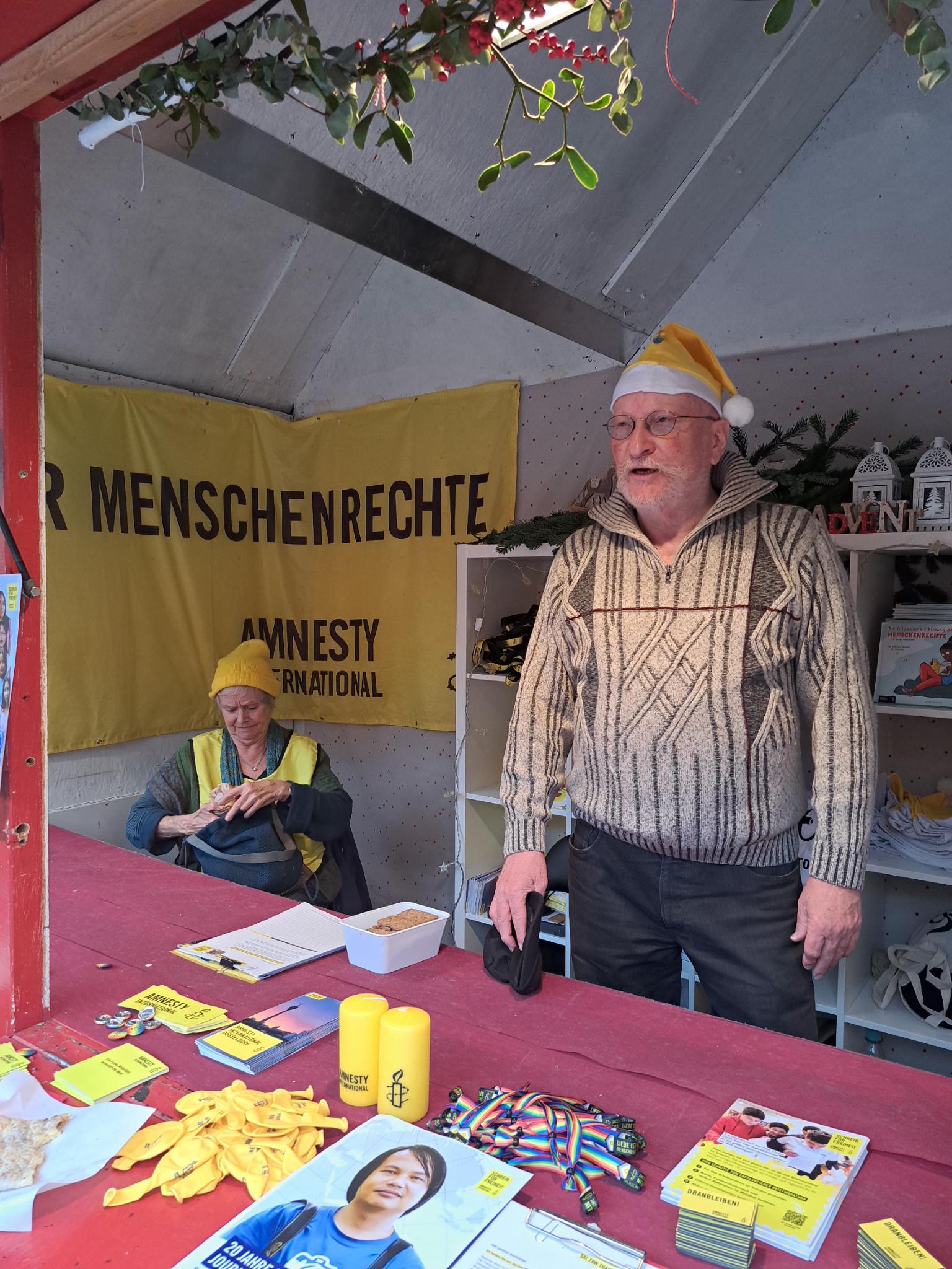 wünscht Amnesty International in Düsseldorf. Hier ein paar Impressionen von unserem Stand auf dem Düsseldorfer Rathaus-Weihnachtmarkt am Tag der Menschenrechte: